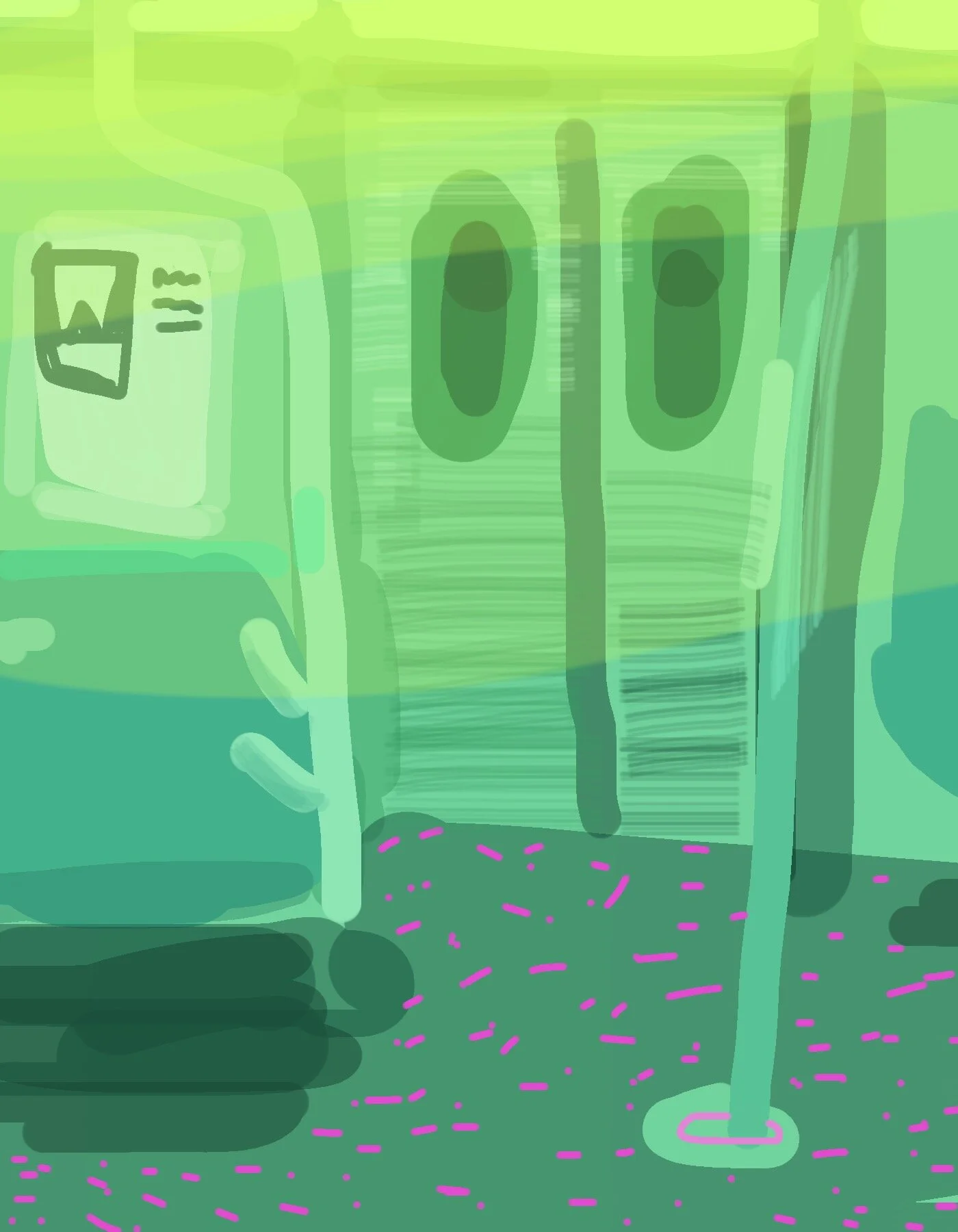 These iphone drawings were made over a 10 year span from observations. They were made while traveling on 6:31 am trains to teach at Purchase College, on long drives across the Northeast, and at home. They indirectly inform elements of my current painting practice.
